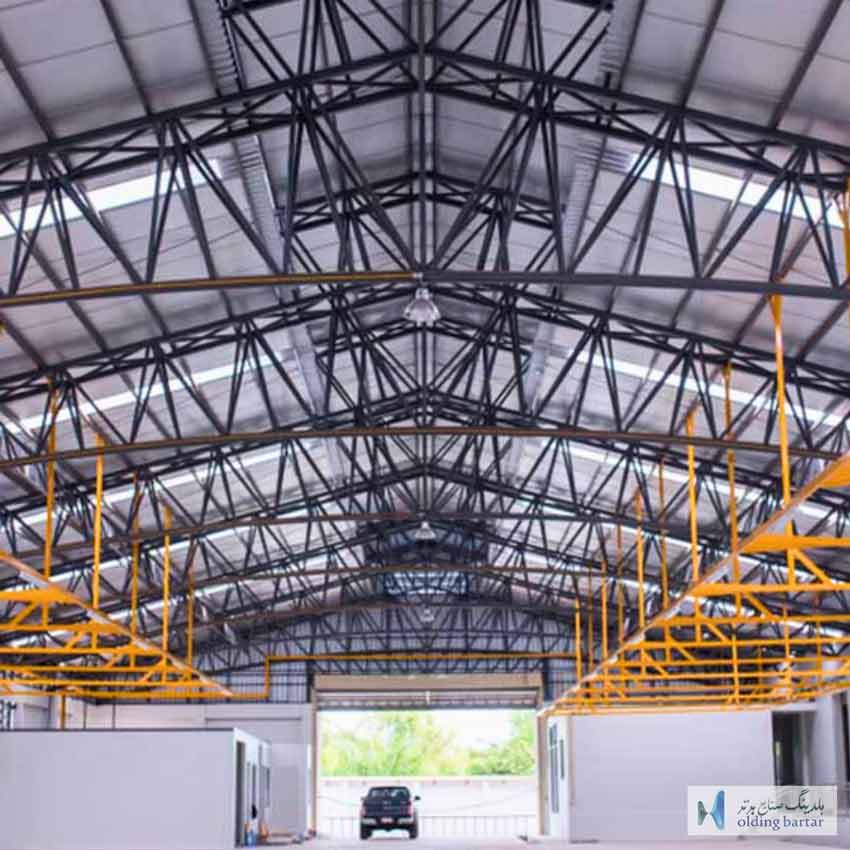 پوشش سقف industrial shed: (میتواند از ورق گالوانیزه رنگ شده، ساندویچ پانل و … باشد.)