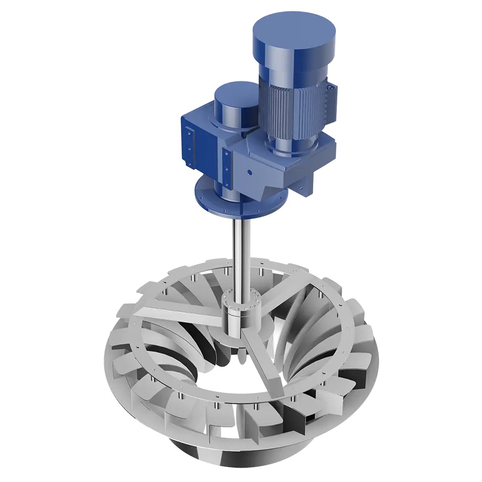 هواده سطحی ثابت توربینی با استفاده از پروانه هایی با طراحی خاص توربینی، قابلیت ایجاد جریان قوی و هوادهی مؤثر را فراهم می کند. این نوع هواده معمولاً برای حوضچه هایی با بار آلی بالا یا نیاز اکسیژن زیاد مورد استفاده قرار می گیرد. طراحی توربینی باعث افزایش راندمان انتقال اکسیژن شده و همزمان اختلاط مناسبی در حجم قابل توجهی از آب ایجاد می کند.